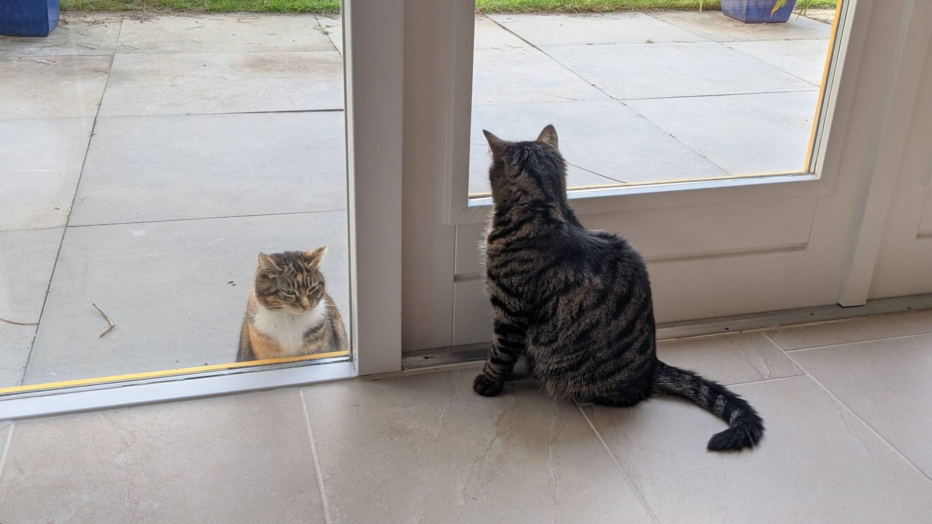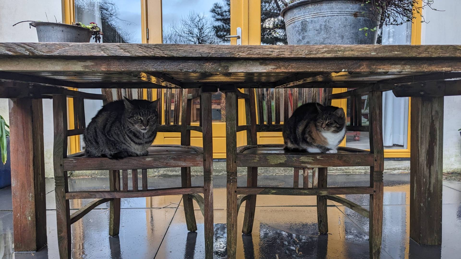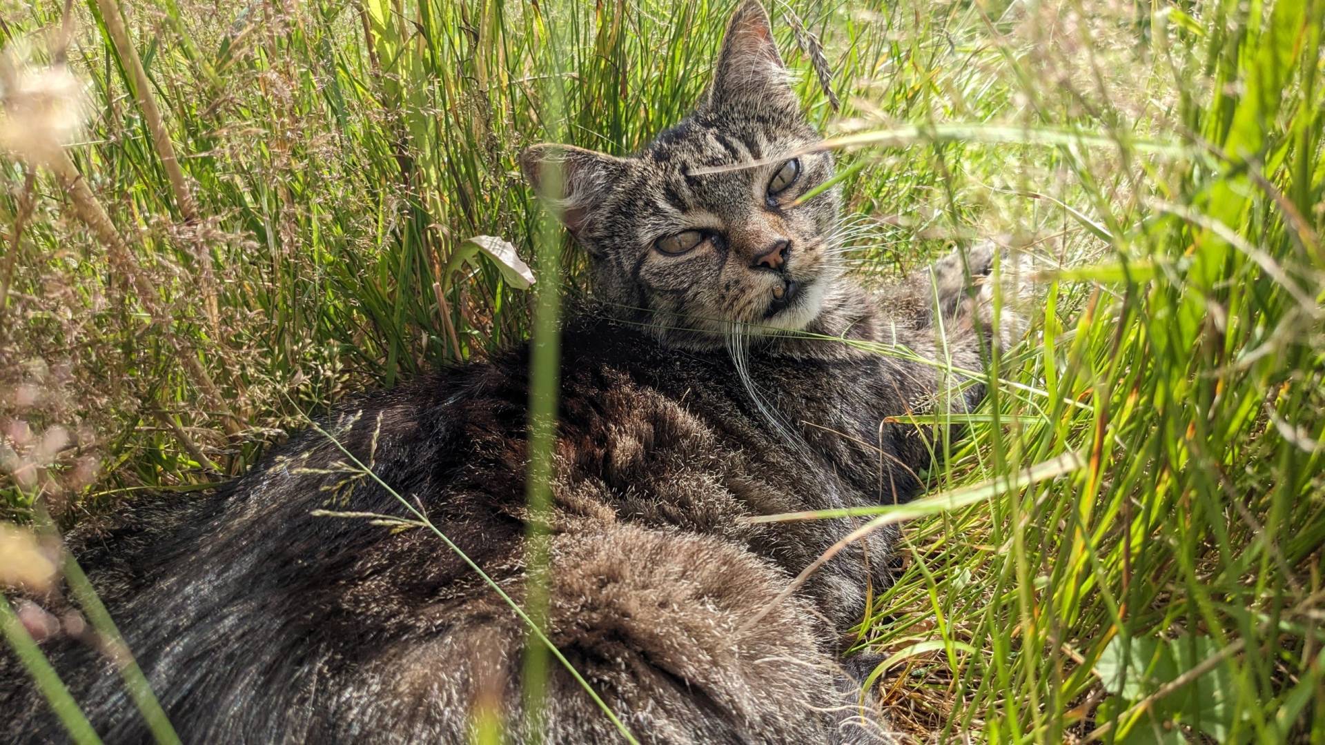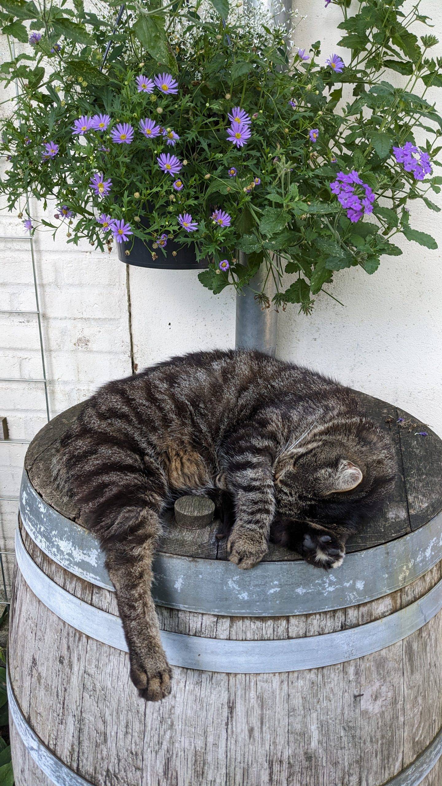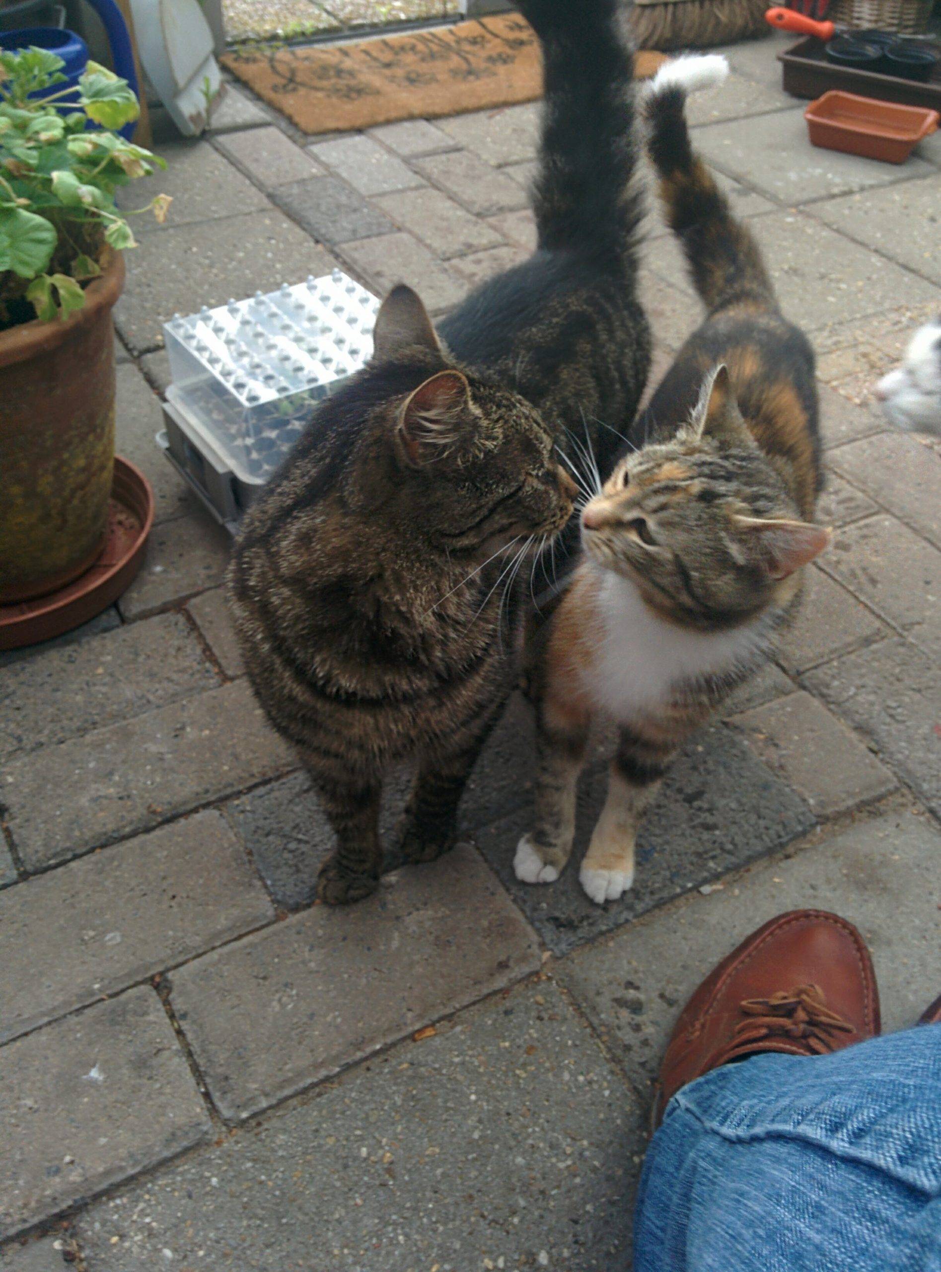 “Two cats in the yard” komt natuurlijk uit “Our house” van Crosby, Stills & Nash. Het gaat over ons huis waarin de poezen een grote rol spelen. Helaas hebben poezen niet het eeuwige leven. Af en toe moet je afscheid nemen van iemand en soms komt er zo maar iemand anders bij. Tegenwoordig zijn het Muns, een zogenaamde “standard issue cat” ofwel een grijs cypertje. Hij is een eeuwig kleutertje en vooral goed in super relaxed liggen slapen. Uren zie je ‘m niet en dan ligt ‘ie ergens in de tuin op een beschut plekje. Zie je ‘m toevallig en roep je ‘m dan, dan zie je één oor even jou kant op draaien, maar veel meer reactie is er niet als je niet aandringt. En Buurmeisje, kortweg BMetje of “Prinsesje”. Een lapje die eerst bij de buurvrouw woonde, maar na naar verhuizing bij ons is gekomen.