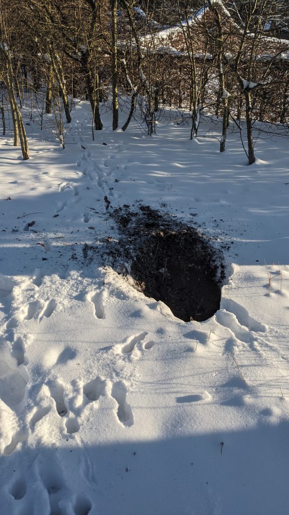 Iemand op zoek naar iets te eten onder de sneeuw?